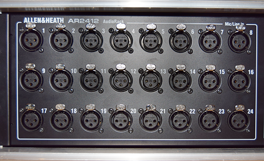 AR2412 ist ein 48kHz Audiorack mit 24 XLR-Eingängen und 12 XLR-Ausgängen, kompatibel mit GLD, Qu, Avantis und SQ-Mischern.